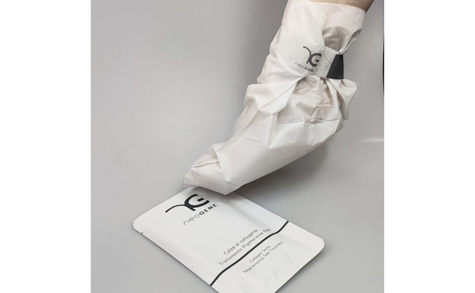 Le calze al collagene Ng sono il trattamento ideale per piedi secchi, screpolati ed affaticati. Arricchite con collagene e ingredienti emollienti, nutrono intensamente la pelle lasciandola levigata, morbida e visibilmente rigenerata. La punta removibile consente di realizzare una pedicure durante la posa, trasformando ogni applicazione in un gesto di bellezza completo.